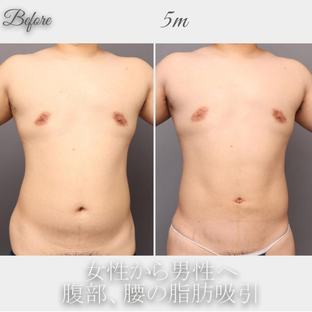 女性から男性へ 腹部、腰の脂肪吸引 術後5か月 155㎝ 62.4㎏ 26歳今西理也 美容外科医ブログ脂肪吸引・豊胸・エイジング治療。
