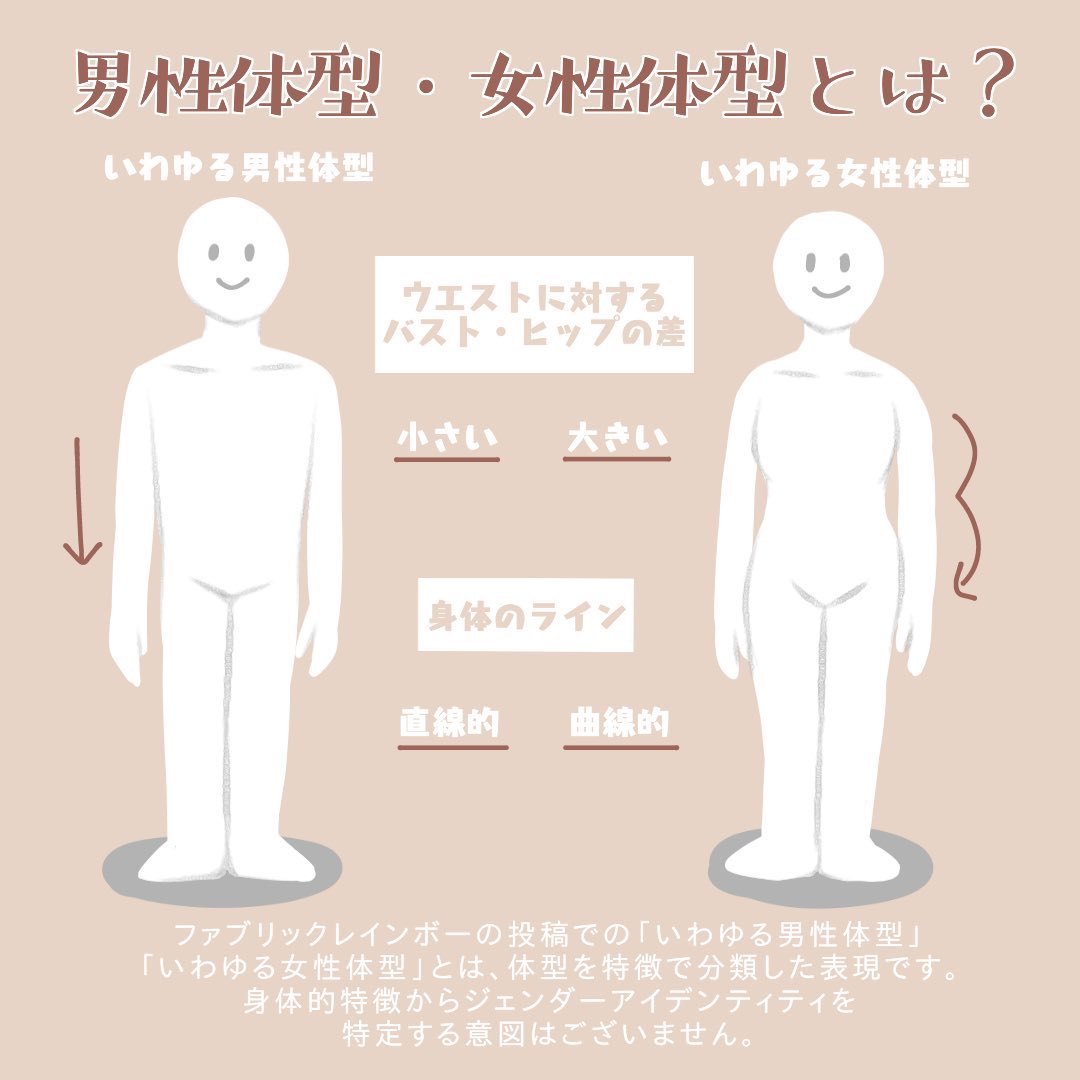 Fabric Rainbow on X: " 男性体型・女性体型とは?服飾業界では、くびれが小さく直線的な体型を「いわゆる男性 体型」、くびれが大きく曲線的な体型を「いわゆる女性体型」と表現する傾向にあります。 ファブリックレインボーでは、体型の特徴にそったスーツもお作り。