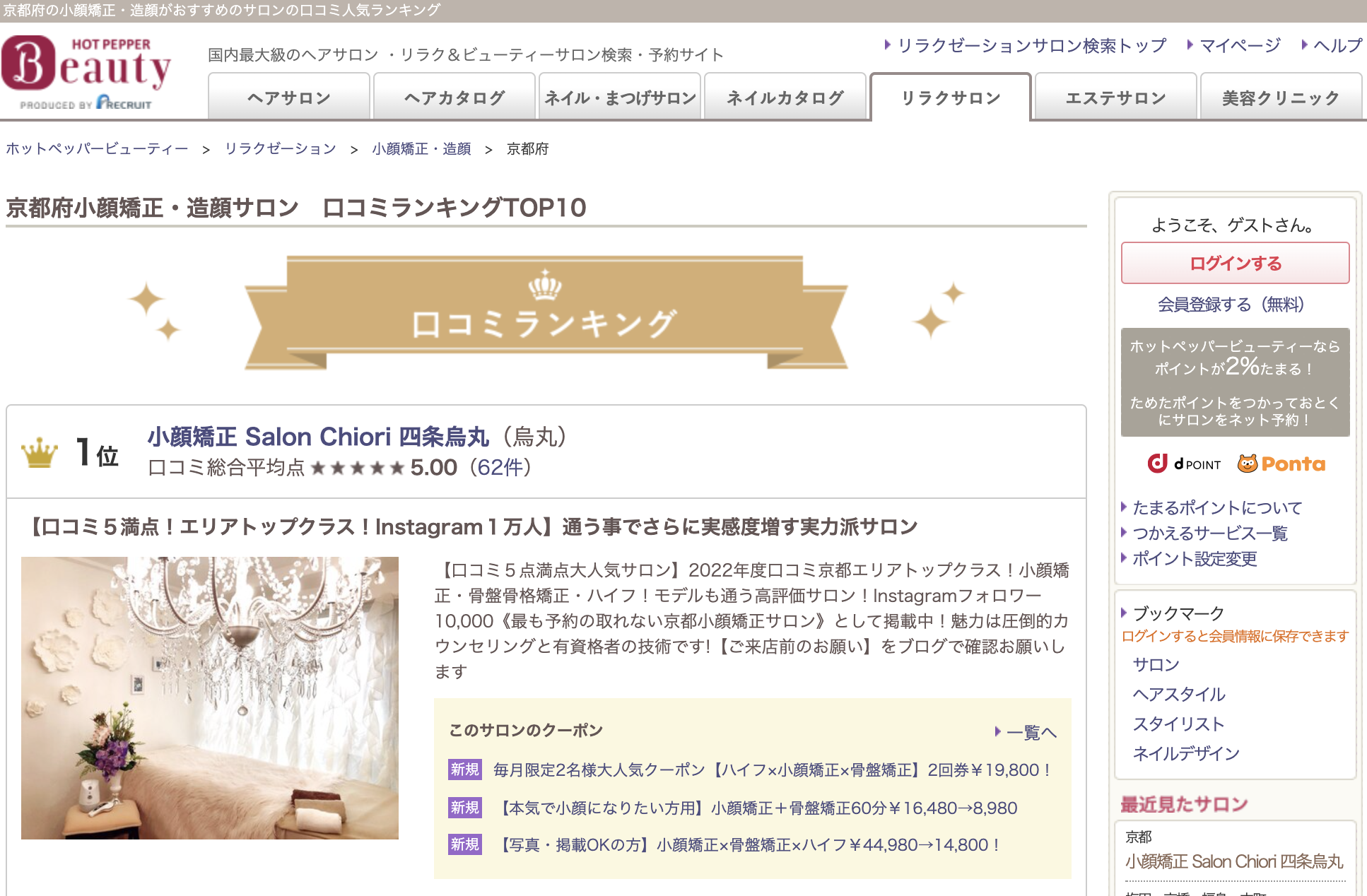 東京都で小顔矯正・造顔がおすすめのサロンホットペッパービューティ。