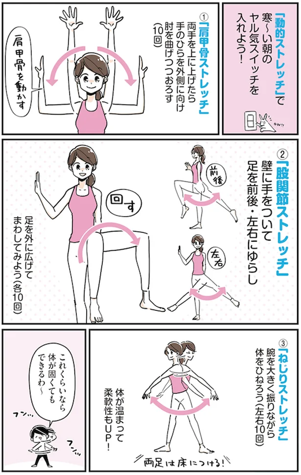為末大監修の動的ストレッチで腸腰筋や臀筋を活性化。