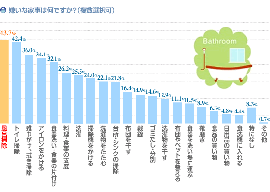 500人に聞いた「面倒だと思う家事」ランキング、2位は「お皿洗い」と「お風呂掃除」、1位は ?家事All About。