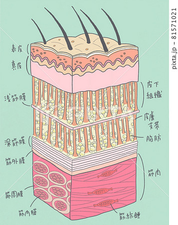 皮膚から筋肉までの構造図 名称ありのイラスト素材81571021- PIXTA。