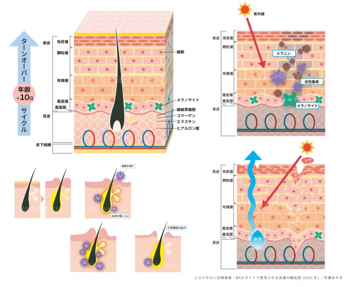 美容 シンプル 肌や皮下組織の図解イラスト制作 H87イラスト工房。