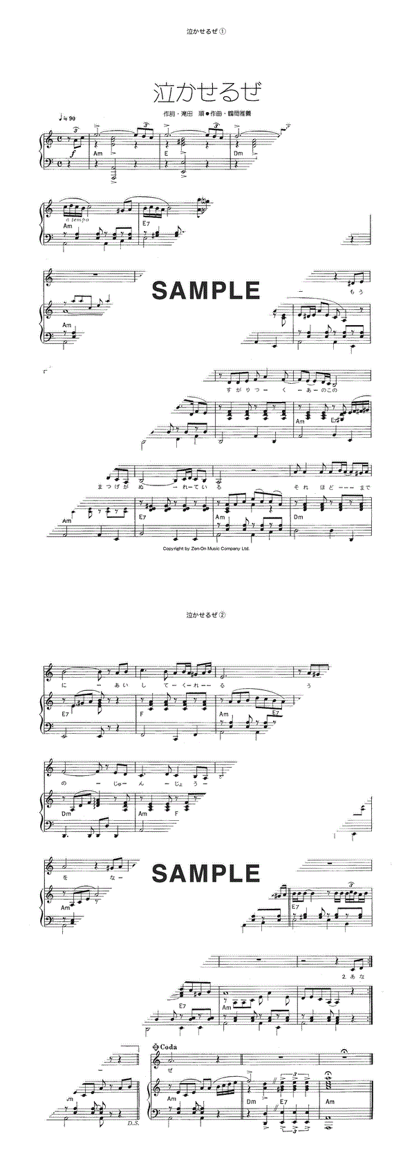 楽譜 泣かせるぜ石原 裕次郎 ウクレレ譜 提供:タイムリーミュージック楽譜@ELISE。