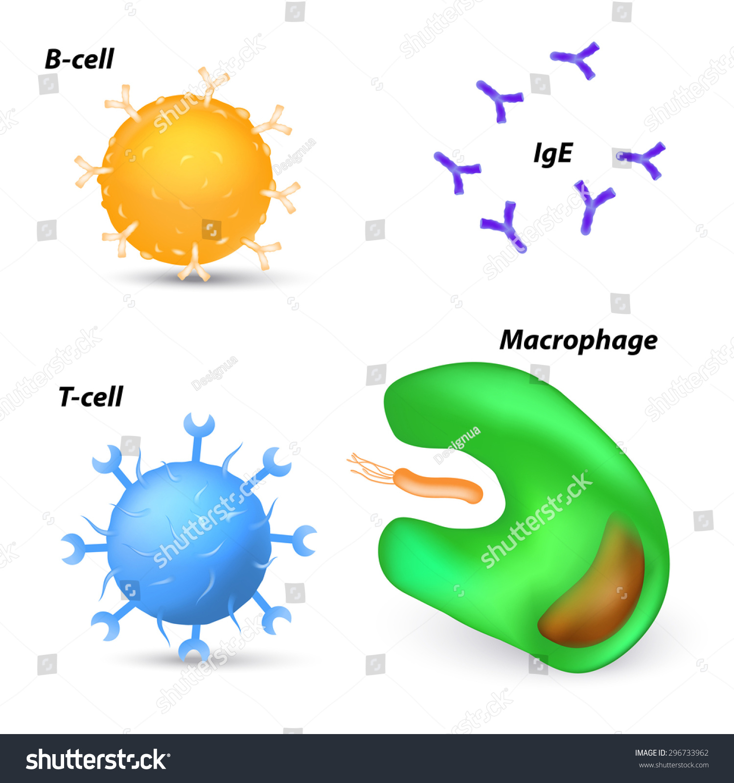 免疫系細胞。マクロファージ、t細胞、b細胞、抗体。」のイラスト素材 296733962Shutterstock。