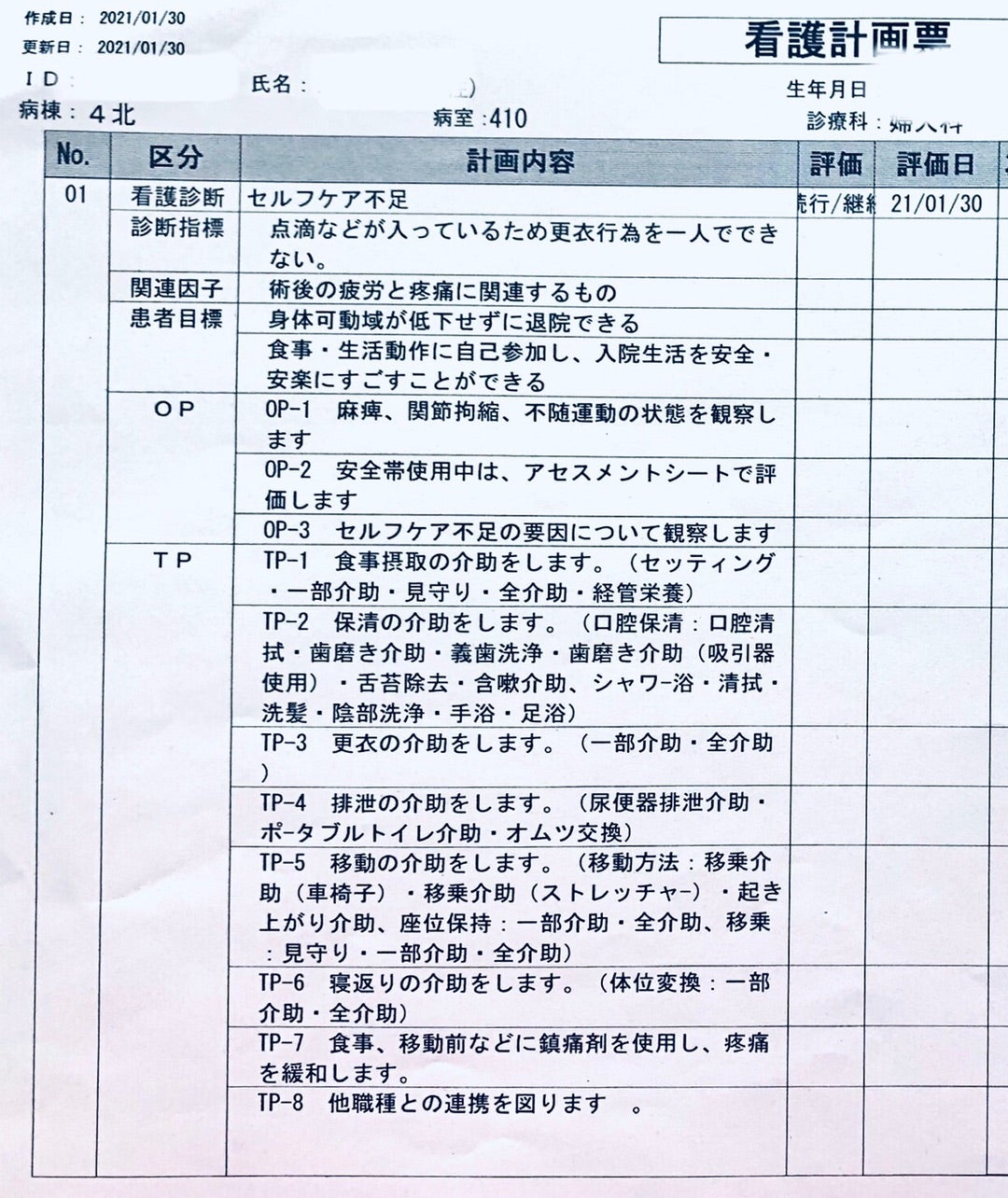 子宮筋腫開腹手術 看護計画票と開腹手術クリニカルパスレモンねーどの病気日記。