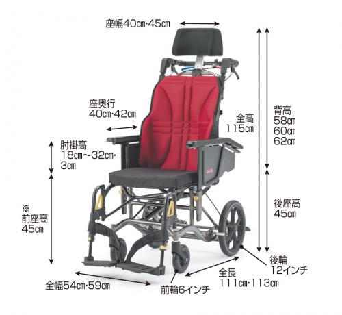 車椅子 松永製作所 CareRu 松永製作所 MH-4Rティルトリクライニング車椅子 S&E 座幅42。