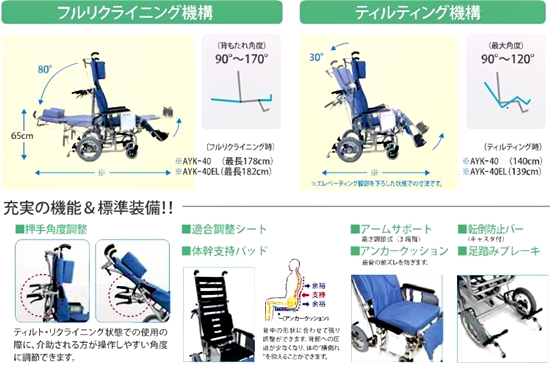 ティルティング&リクライニング車いす “あい&ゆうき”のクリオネット AYK-40 – 介護用品・介護用品レンタル、住宅改修の事なら株式会社はんど。