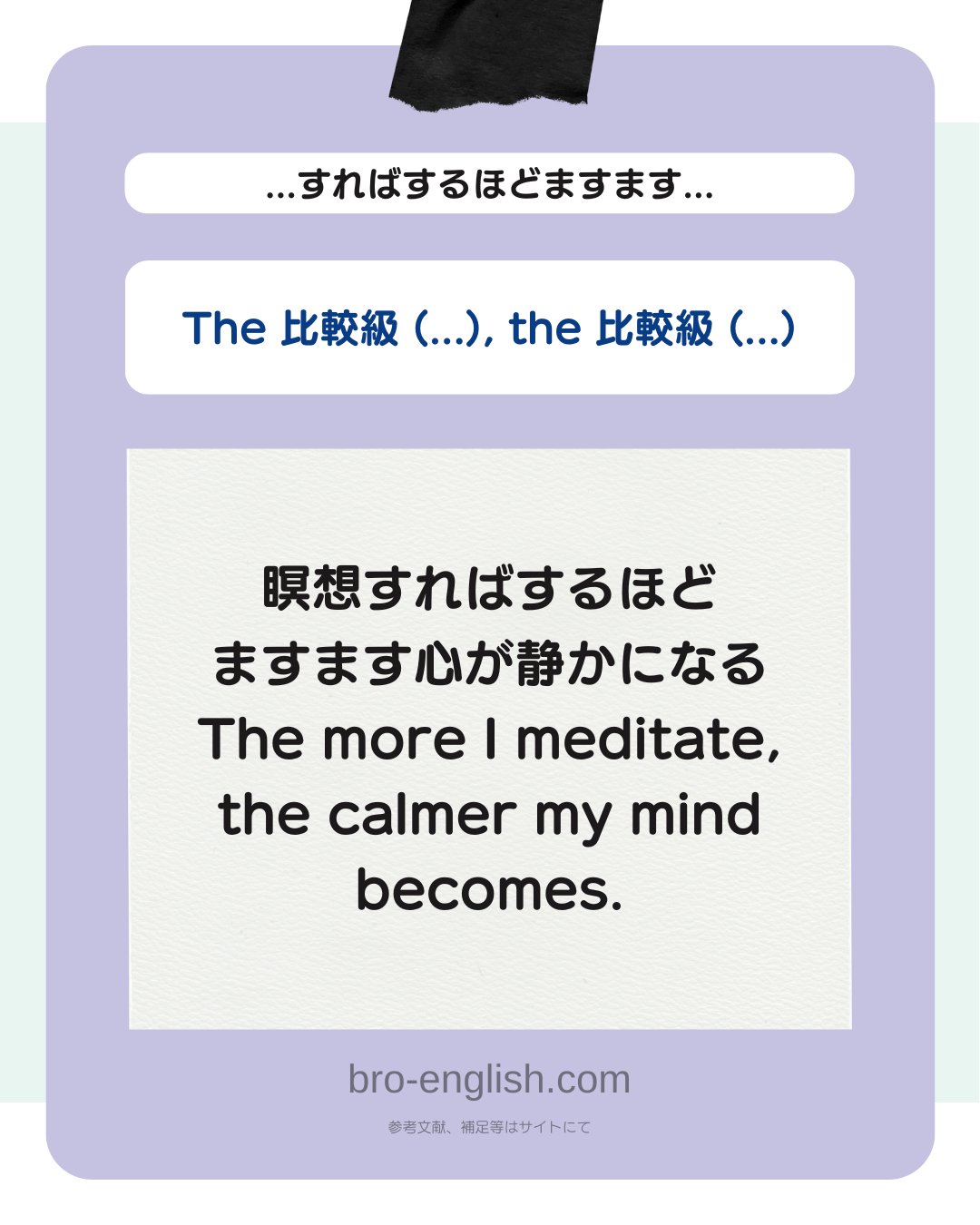 ブロウ英語力の爆上げ物語 on X: "英語で言ってみよう: 瞑想すればするほどますます心が静かになるhttps:t.co 22QlHYn5bX"X。