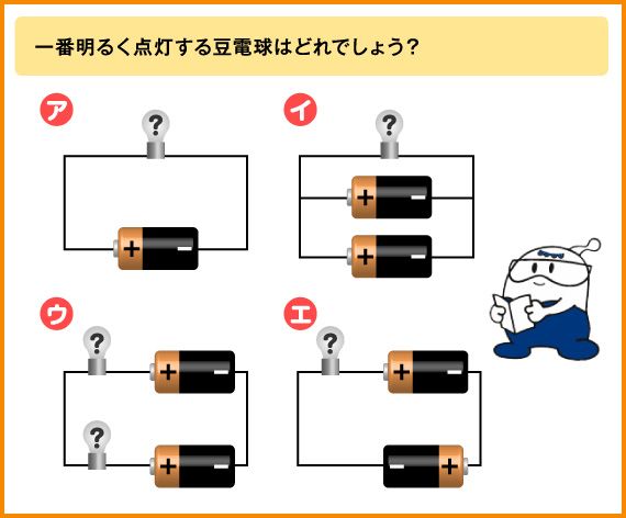 中学受験理科「乾電池・豆電球のつなぎ方と明るさ」基本問題Stupedia。