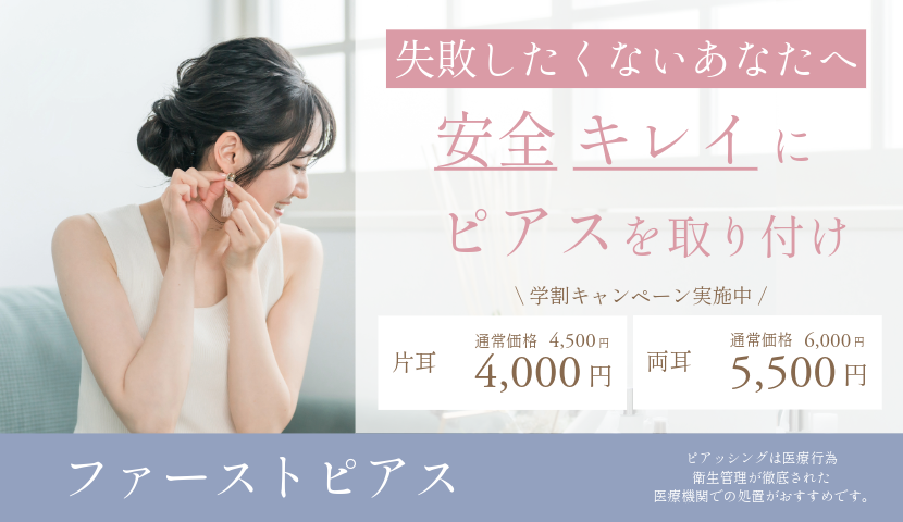 医療ピアスを開ける場合の料金や施術内容静岡の美容皮膚科・美容外科ならスキンクリニック藤枝院 掛川院 公式。