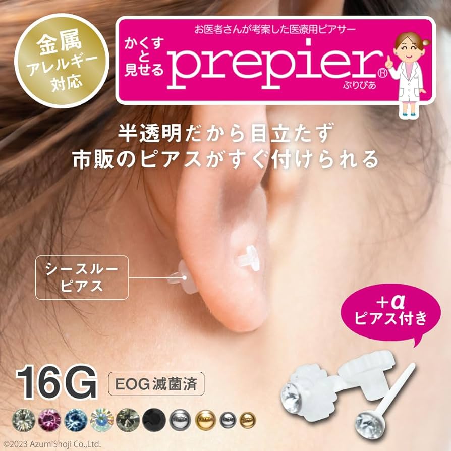 Amazonピアッサー ぷりぴあ 両耳用 透明ピアス 医療用樹脂製ピアサー 金属アレルギーフリー prepier ファーストピアス 付替ピアス付3mmボール シルバー×2 両耳用ぷりぴあピアッサー 通販。