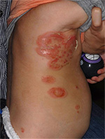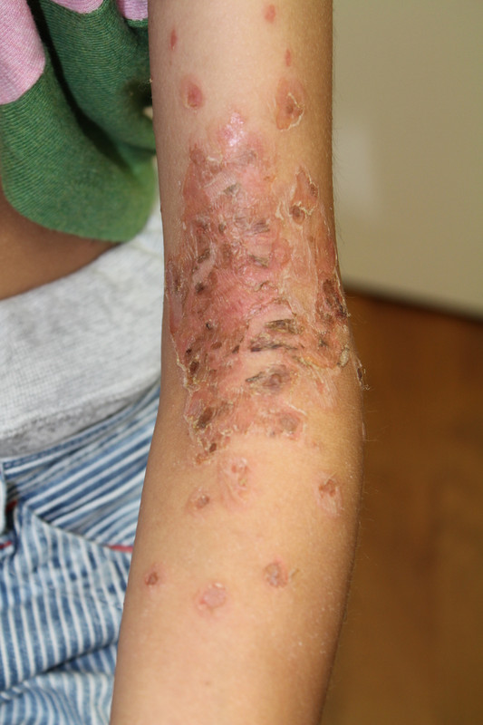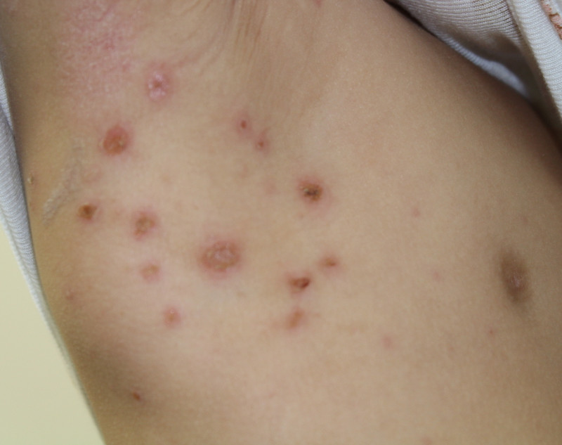 黄色ブドウ球菌による伝染性膿痂疹 飛び火・とびひ の治し方橋本クリニック ゆめタウン呉呉市 皮膚科。