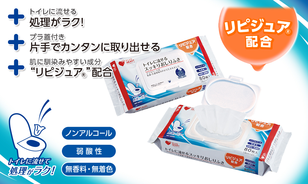 トイレに流せるスッキリおしりふき安全、快適、便利な介護用品ブランドPLUSHEART プラスハート。