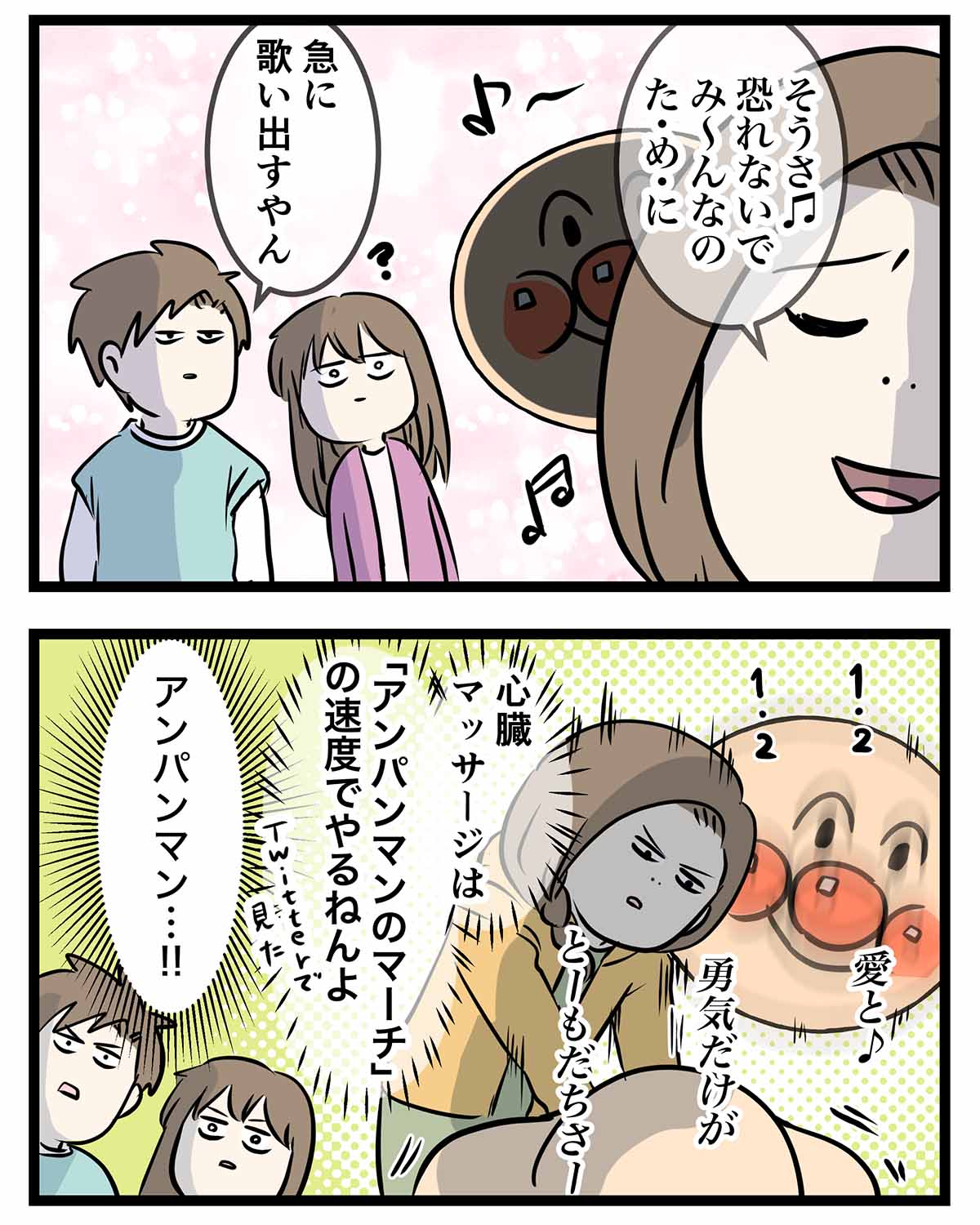 えむしとえむふじん on X: " 保存してね 心臓マッサージは アンパンマンのマーチのペースでやるとイイコミックエッセイ漫画が読めるハッシュタグhttps:t.co I31rhCwBhh"X。