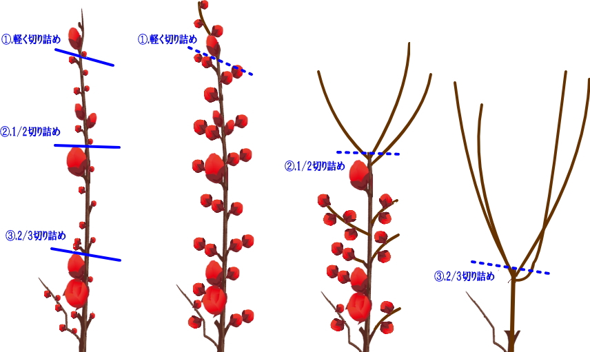 ウメの剪定方法 樹形の違いを図解で バッサリ切っても大丈夫です楽手入れ。