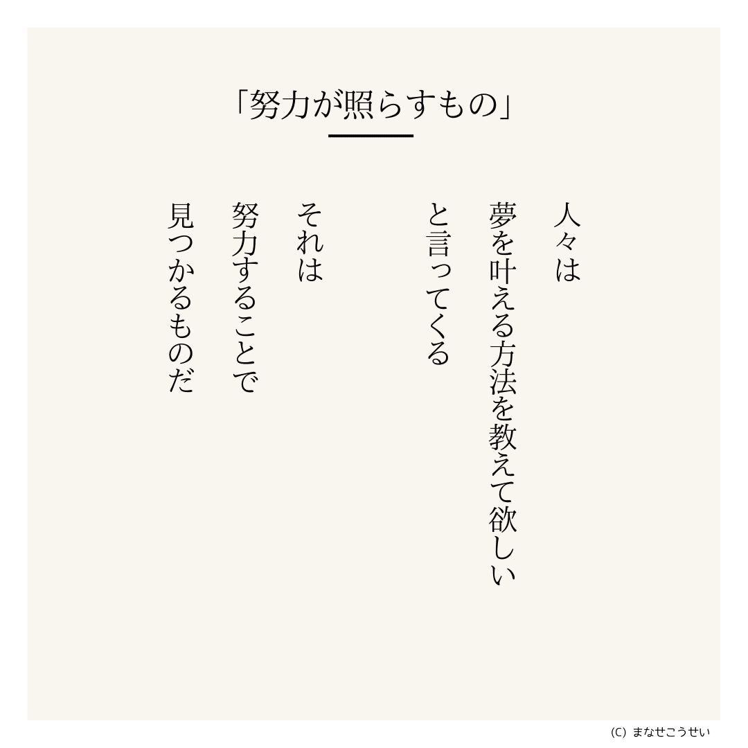 心にひびく名言043「努力が照らしてくれるもの」まなせ こうせい。