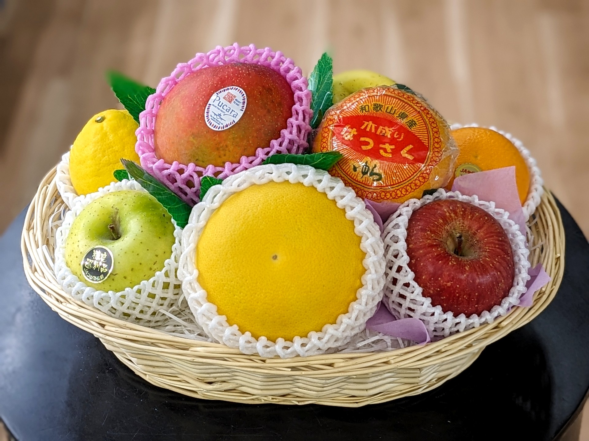楽天市場ご進物 お供え 盛り籠果物 籠盛りフルーツ 果物セット フルーツセット お盆 法事 お彼岸 命日 初盆 四十九日 お中元お歳暮 贈答用 お悔み 仏事 楽屋見舞い 詰め合わせ 法要 お供え物 49日: フルーツギフトとゼリー 山口果物。