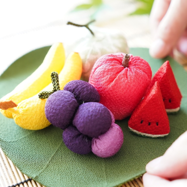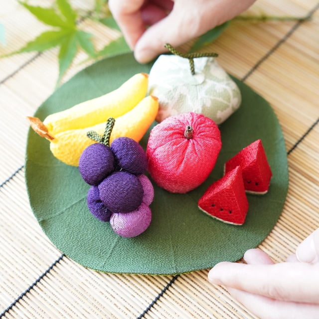 お供え ちりめん 飾り 果物 フルーツ セット 小 蓮の葉 国産 お供え物 置物 手作り 手元供養 水子供養 和 ミニチュア 小さい かわいいおしゃれ 仏具 御供え物 ご仏前 食べ物 お盆 57-23 手元供養のディアファミリ。