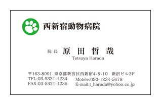 動物の足跡と口ひげの動物病院用診察券デザインG14動物病院タイプ診察券ドットコム。