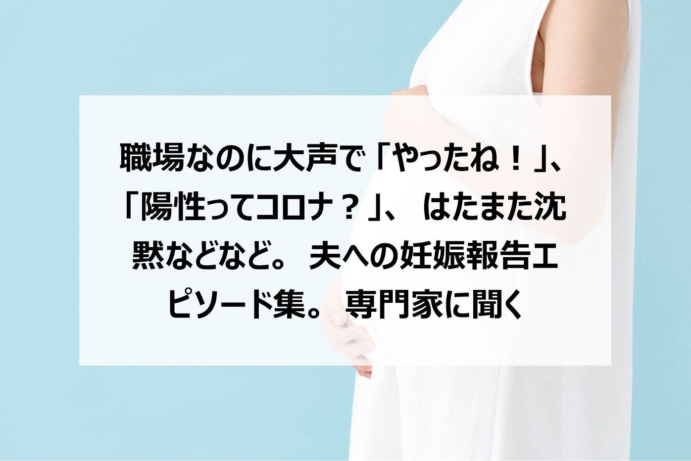 職場なのに大声で「やったね!」、「陽性ってコロナ?」、はたまた沈黙などなど。夫への妊娠報告エピソード集。専門家に聞くたまひよ。