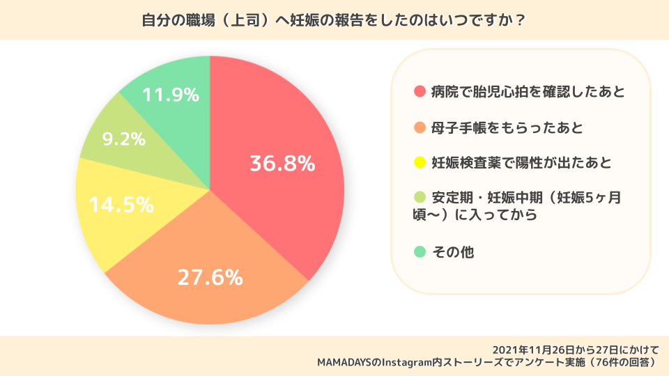 妊娠2カ月で約7割は上司など会社へ報告済み「そのほうが周囲に迷惑をかけない」という声も 19,005人のリアルママボイス たまひよ。