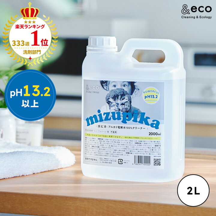 SALE特価 15%OFF アルカリ電解水クリーナー 水ピカ pH13.2 2L 楽天ランキング333週1位 掃除 除菌 消臭 マルチクリーナーコンロ 油汚れ フローリング 壁紙 タバコ ヤニ落とし スチームクリーナー 洗剤 重曹 クエン酸 不要 詰め替え 大容量エコアイデア。