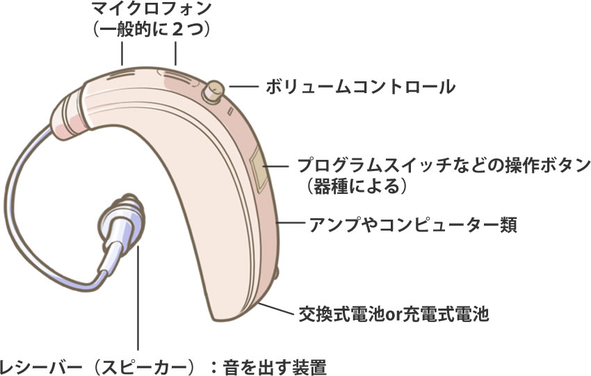 補聴器の仕組み:補聴器の仕組みや部品ごとの役割、タイプ別の特徴などを解説京都の認定補聴器専門店 洛北補聴器。