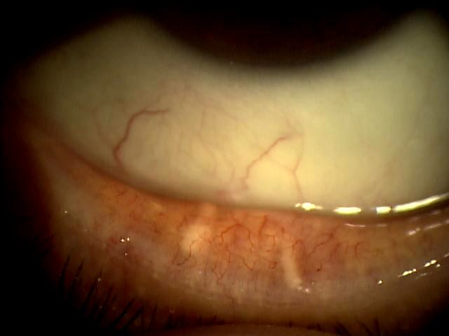眼瞼結膜結石 まぶたをひっくり返すと 黄色いツブツブ。