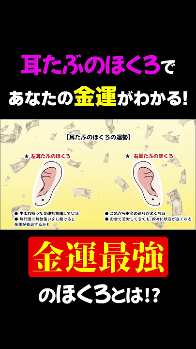 耳のほくろでわかる貴方の金運shortsほくろ占い金運 - YouTube。