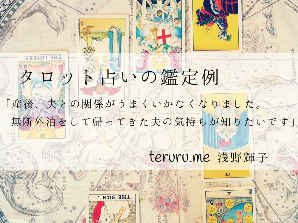 相手の気持ちを占うタロット占いの鑑定例「子どもが生まれてから夫との関係がうまくいかなくなりました。無断外泊をして帰ってきた夫の気持ちが知りたいです」teruru.me-タロット占い師の浅野輝子 あさのてるこ 公式サイト。