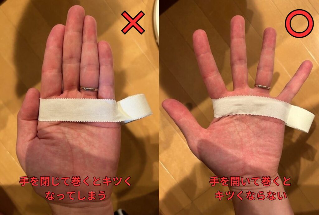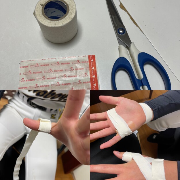 豆が裂けてバットを振るのが痛い時のテーピングの巻き方。
