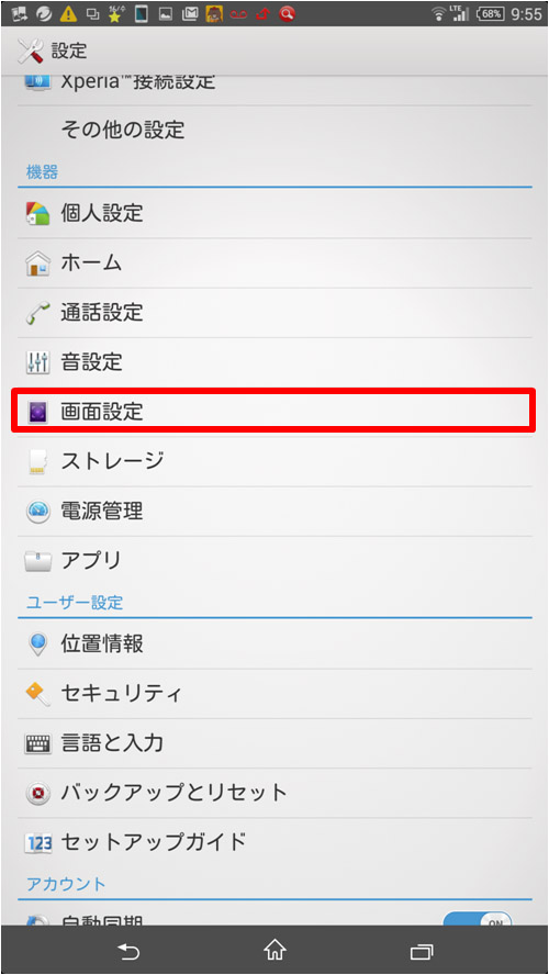 画面の明るさ調整初期設定Xperia エクスペリアソニ。