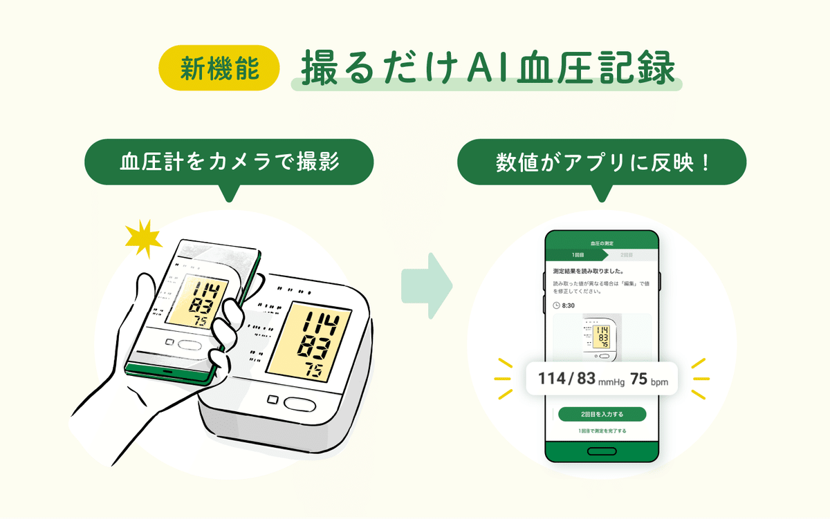 写真を撮って血圧入力ができるAI新機能を追加CureApp キュア・アップ。