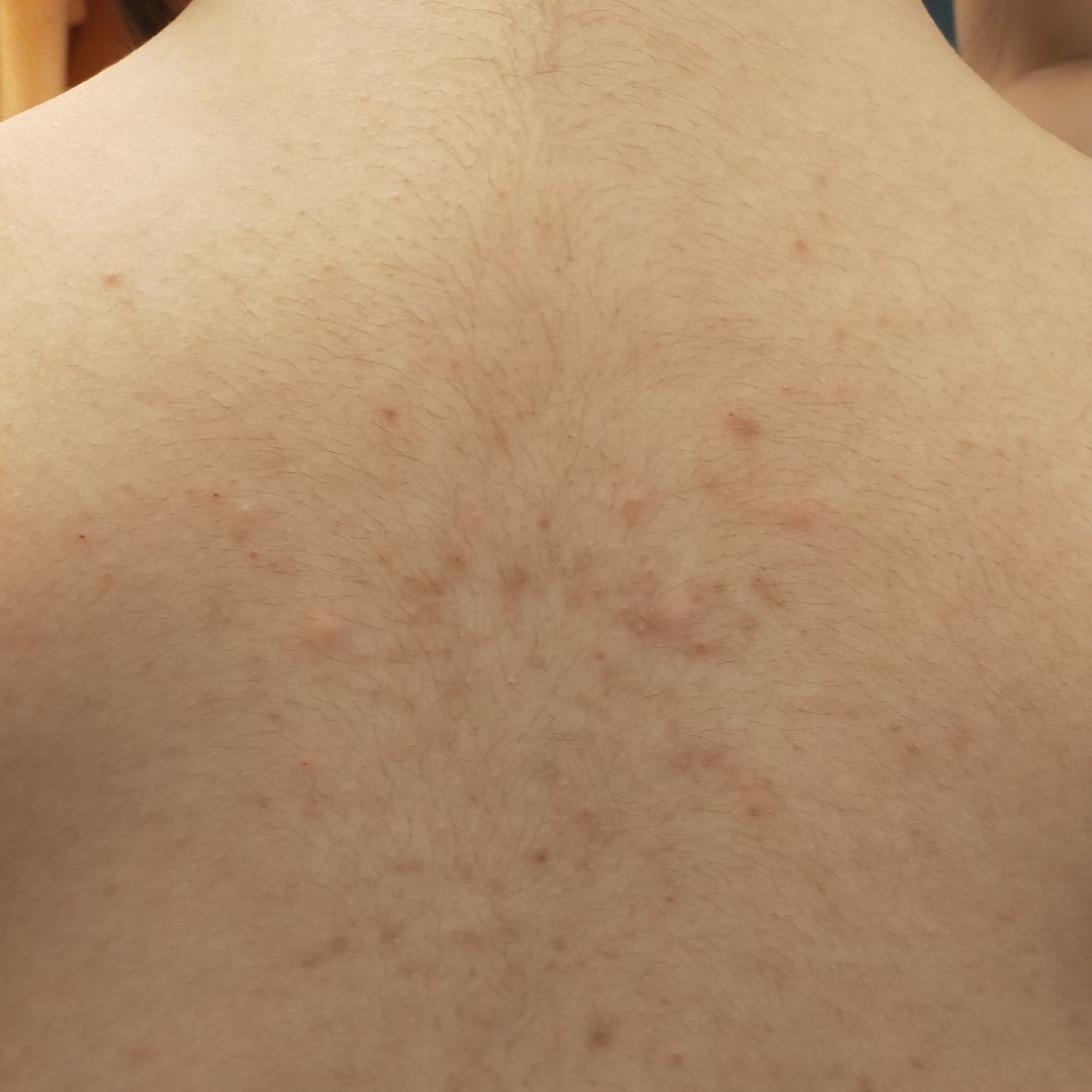胸、背中、二の腕ぶつぶつは治りにくいニキビ?ではなくマラセチア毛包炎 かも・背中ニキビ難治性ニキビあゆ皮フ科クリニック高槻市の一般皮膚科・小児皮膚科・皮膚外科・美容皮膚科。