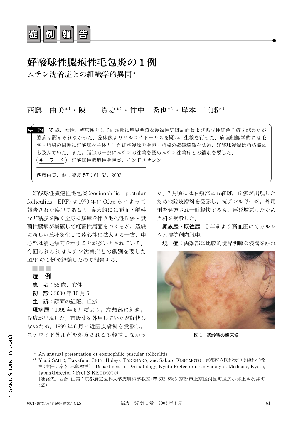 好酸球性膿疱性毛包炎の1例―ムチン沈着症との組織学的異同臨床皮膚科 57巻1号医書.jp。