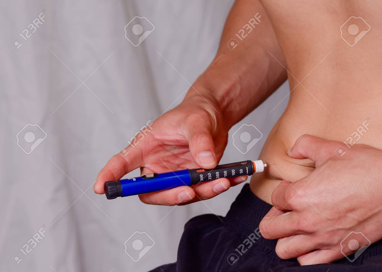 患者はインシュリンのペンでインスリンを注射します。の写真素材・画像素材 Image 35604972。