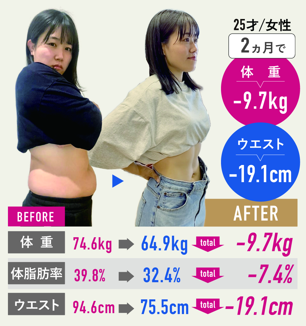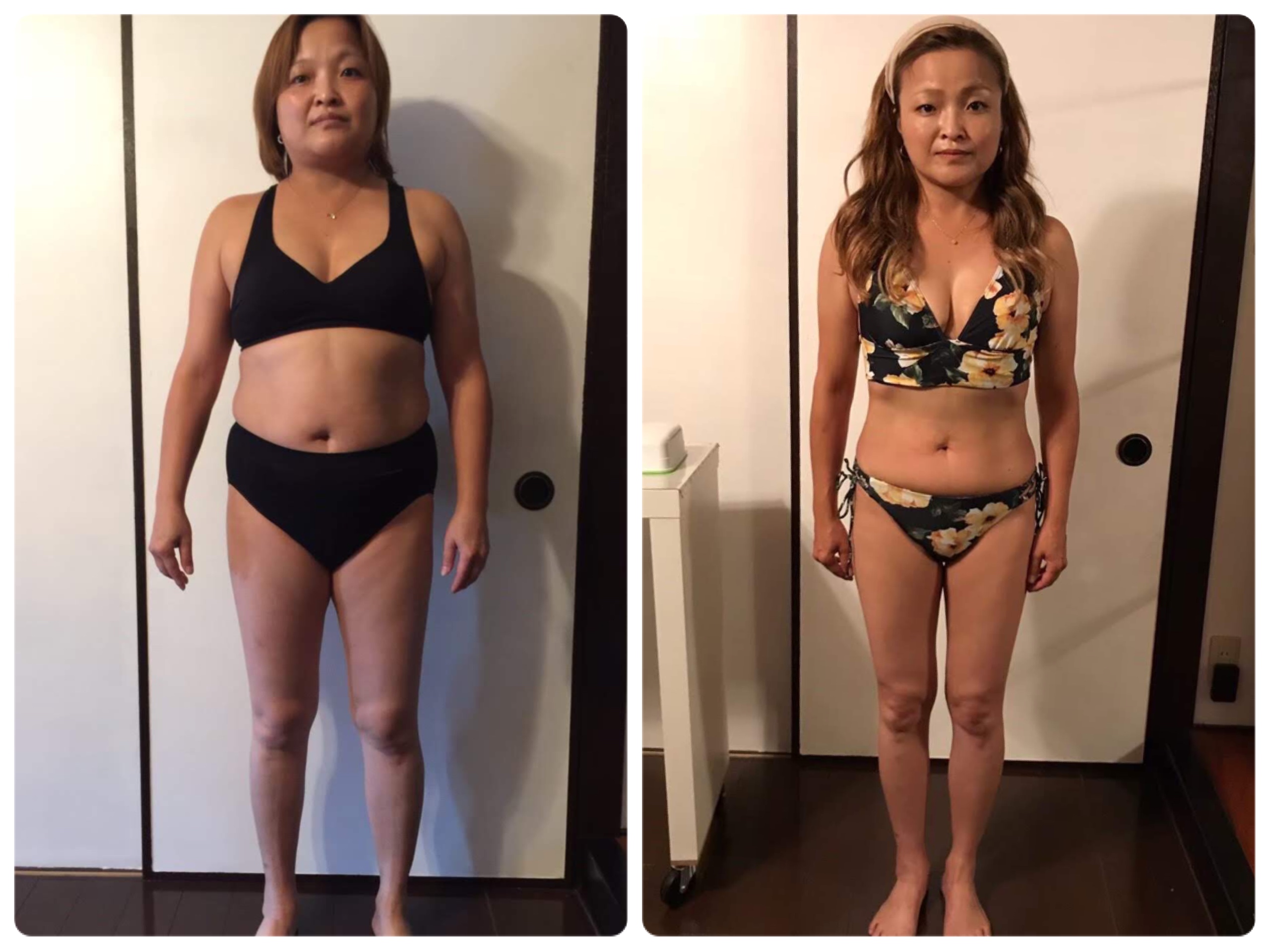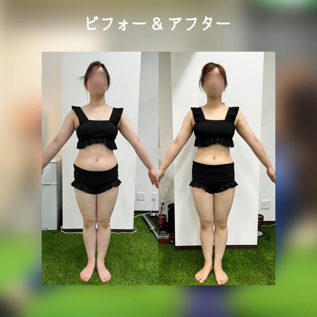 ビフォー&アフター体重-10kg 体脂肪-6.9% ウエスト-12.5cmパーソナルトレーニングジムWHOEVER フーエバー。
