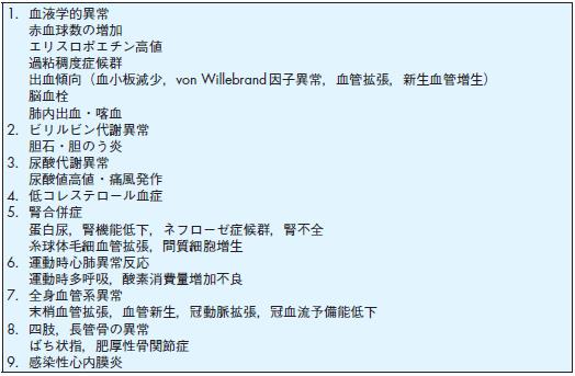 4 チアノーゼ型先天性心疾患にみられる全身系統的異常。