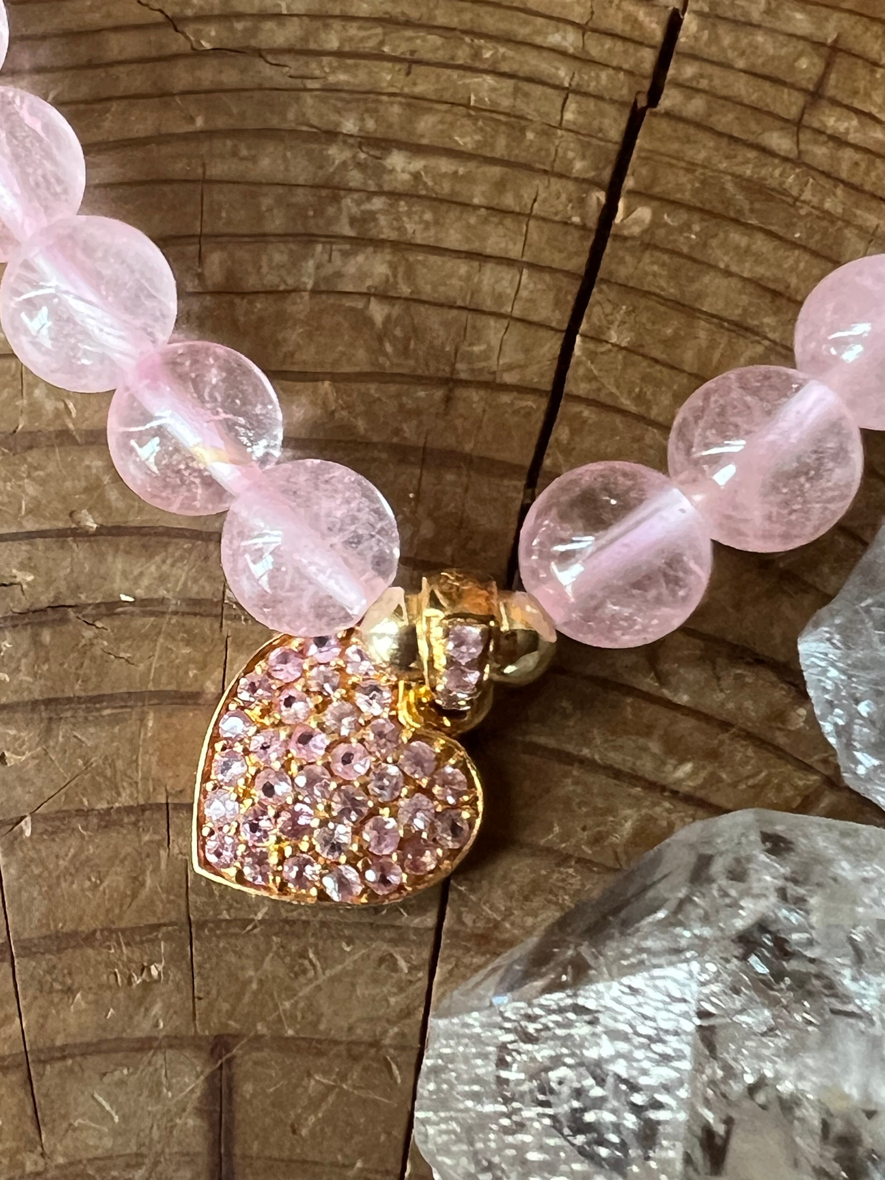 与えられる冠の意味 7mm ピンクトパーズ&サファイアハートチャーム ブレスレットamenti crystal。