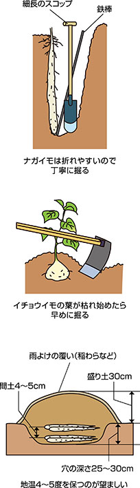 ヤマイモの収穫適期と掘り取りのコツ、蓄え方今月の家庭菜園JAたのふじ。