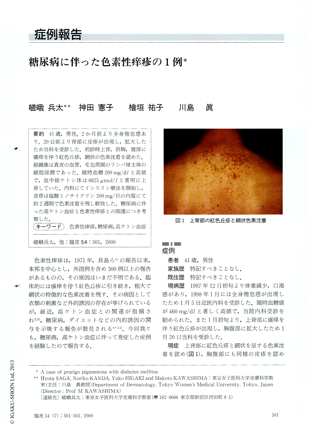 糖尿病に伴った色素性痒疹の1例臨床皮膚科 54巻7号医書.jp。
