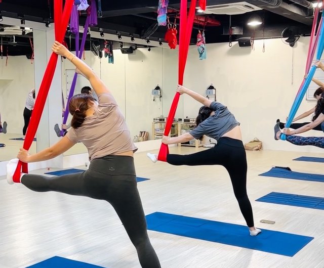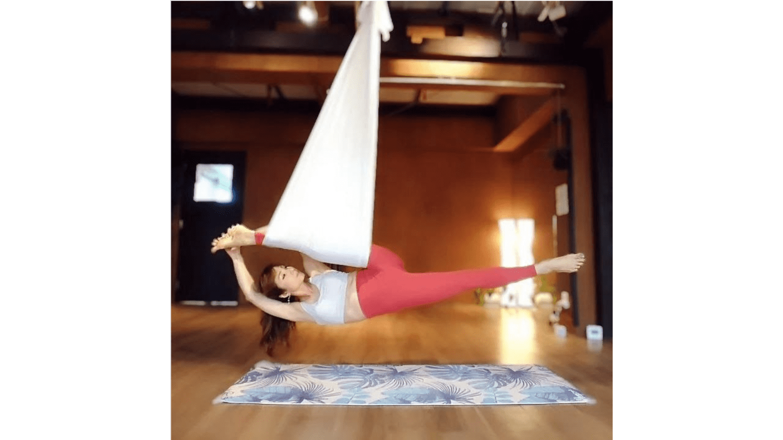 ヨガをやったことがない方、体の硬い方ほどぜひ挑戦して欲しいエアリアルヨガレッスン CONTRAILアウトドアスポーツトレーニング 講習 情報が見つかるポータルサイト「Training Greenfield」。