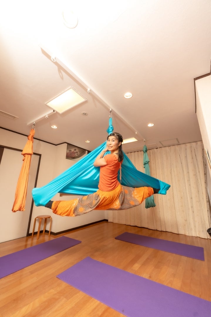 ハンモックを使って空中で動く「ウーナタ エアリアルヨガ」とは一体何なのか?日本人初のインストラクター・谷口美里さんにスタジオ設立の裏話など根掘り葉掘り聞いてみた- GIGAZINE。