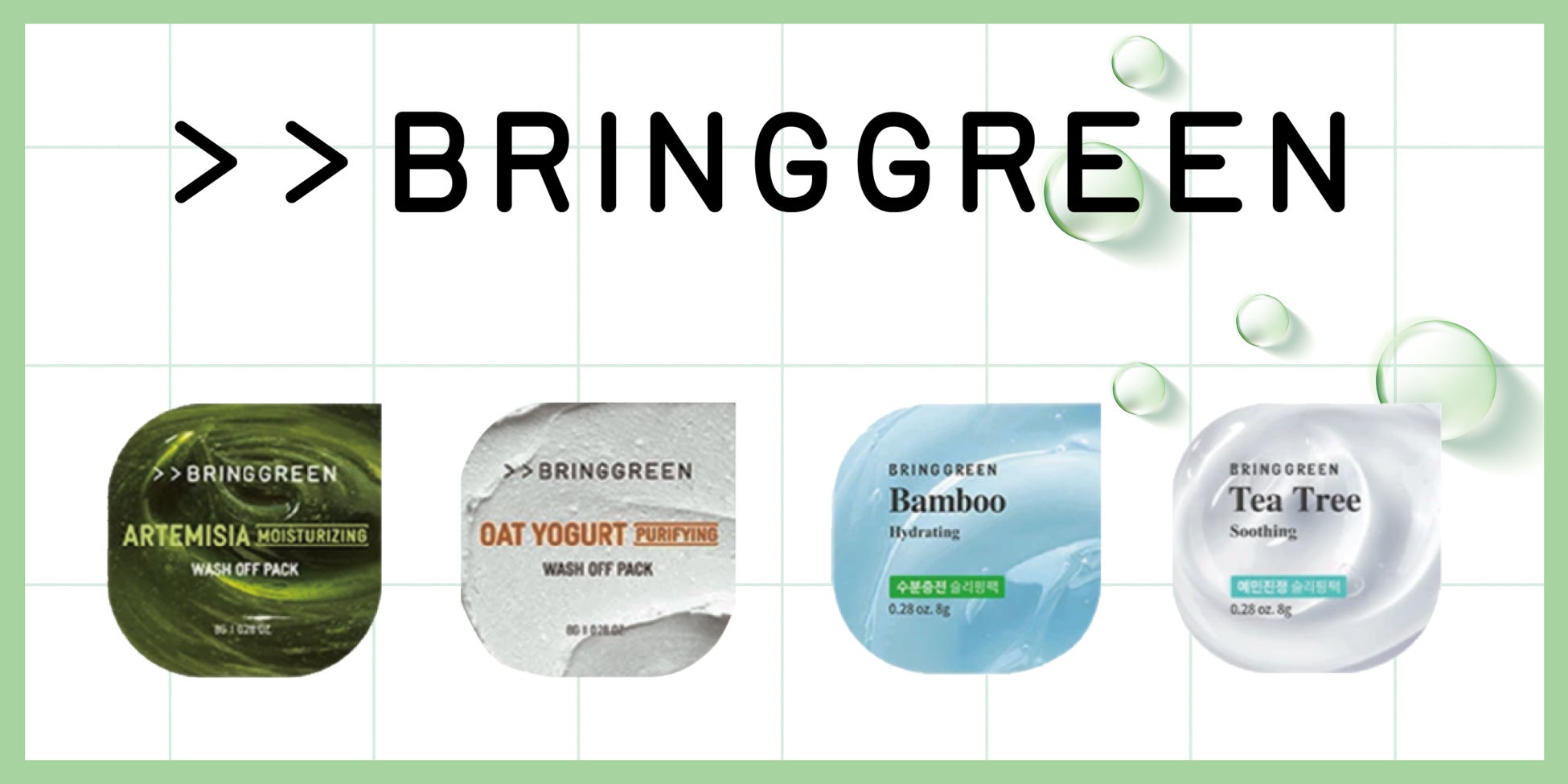 韓国オリーブヤング発、ヴィーガンスキンケアブランド BRINGGREEN ブリングリーン肌タイプに合わせて選べるフレッシュボールパック4種株式会社韓国高麗人蔘社のプレスリリース。