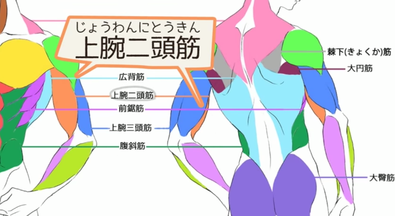 腕を曲げる時の筋肉のイラスト_上腕二頭筋の収縮のイラスト素材101748195- PIXTA。