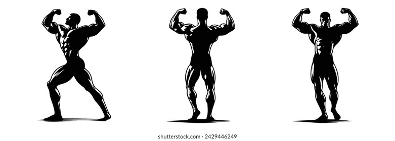 男性のボディービルダーのシルエットは、白い背景で隔離の異なるポーズ アクションを設定 イラスト フリー素材EPS無料ダウンロード -Pikbest。