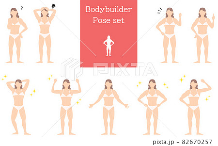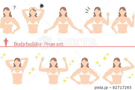 ボディビルダー女性のポージング、疑問・悩む・ガッツポーズ・指さしのイラスト素材82717265- PIXTA。