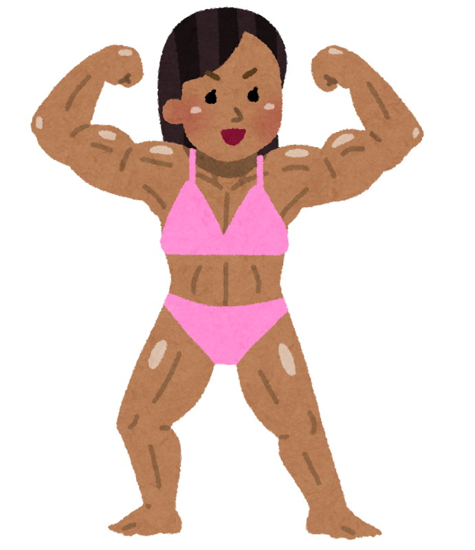 ボディビルダー女性が正面ポーズを決め筋肉がキレてるの無料イラスト 運動50022素材Good。