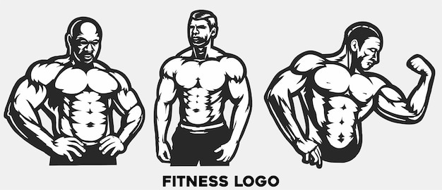 ポーズ、ジムのロゴ、筋肉フィットネス、トレーニング、フラットイラストベクトルとボディービルダーPremiumベクトル素材。